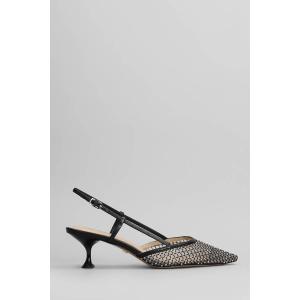 Decollete in pelle e tessuto Nero